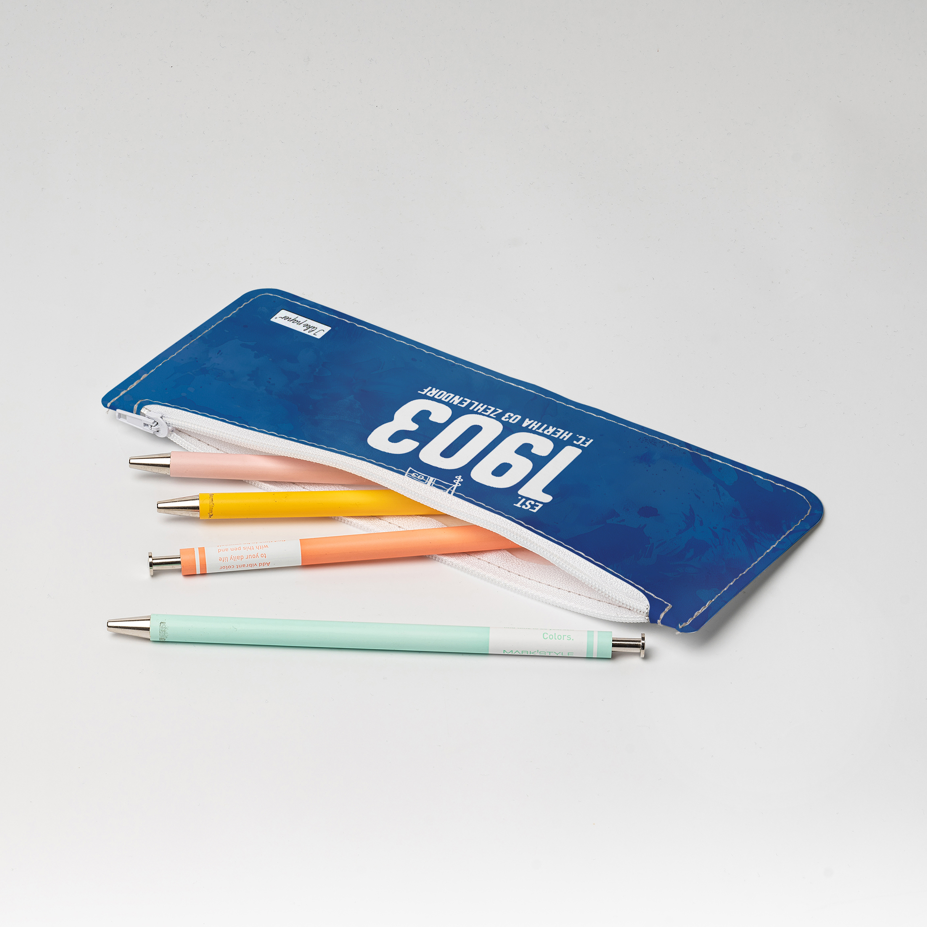 Deine Federmappe mit unserem einzigartigem EST 1903 Design. Die normale hat genug Platz für eine Handvoll Stifte und den wichtigsten Utensilien. Und in die große XL passt noch etwas mehr rein.